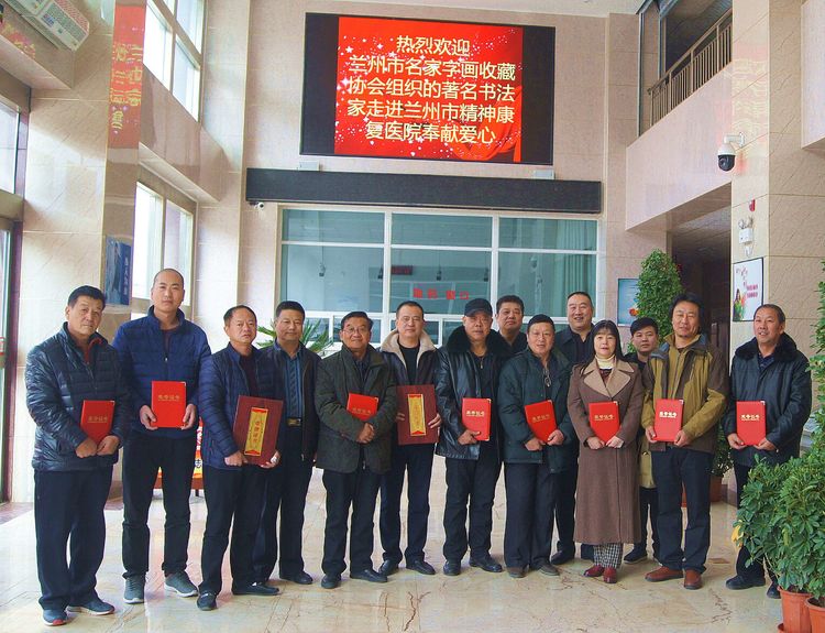 2018年12月15月兰州市名人字画收藏家协会由会长徐弟兴先生组织著名书画家郝国良、延风、李治甲、杜阿伟、梁海平、马宏伟、呼福果、赴智宏等十名位书画家走进兰州市精神康复福利院翰墨丹青情系慈善献爱心笔会活动!
